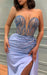 Sexy Lavender Strapless Prom Dress, Tulle Split with Beading