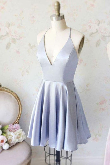Simple Lavender Short Homecoming Dresses V Neck Ruched Graduation Dress