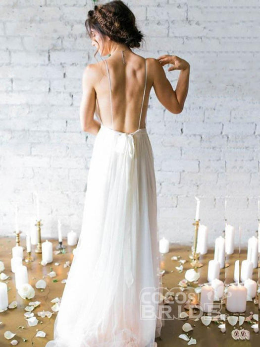 Spaghetti Straps V-neck A-line Sexy Backless Floor Length Wedding DressesSpaghetti Straps V-neck A-line Sexy Backless Floor Length Wedding Dresses