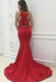 Unique Back Design Red V-neck Sleeveless Mermaid Sweep Train Prom Dresses