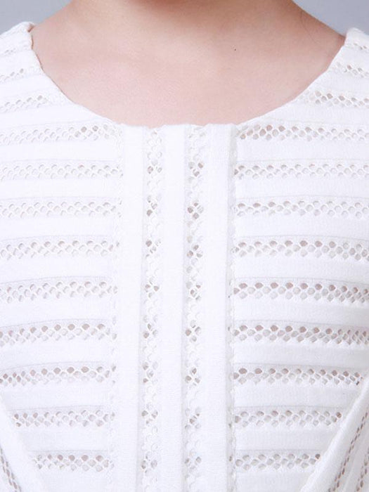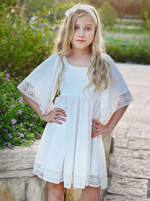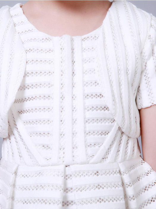 White Short Sleeves Cotton Blend Flower Girl Dresses Tea-Length A-Line Pleated Kids Daily Wear Dress
