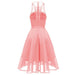 A| Bridelily Women Round Neck Chiffon Lace Dress