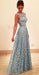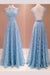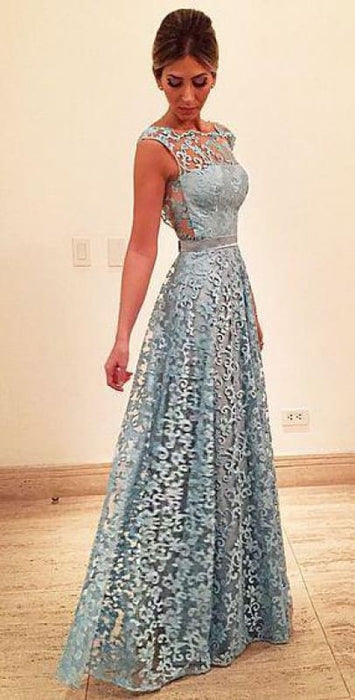 A-line Blue Sleeveless Lace Floor-length Prom Sexy Evening Dresses
