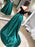 A-line Dark Green Off-the-shoulder Sweep Train Evening Dress Prom Gown