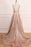 A Line Deep V Neck Long Prom with Sequins Glitter Sleeveless Evening Dress