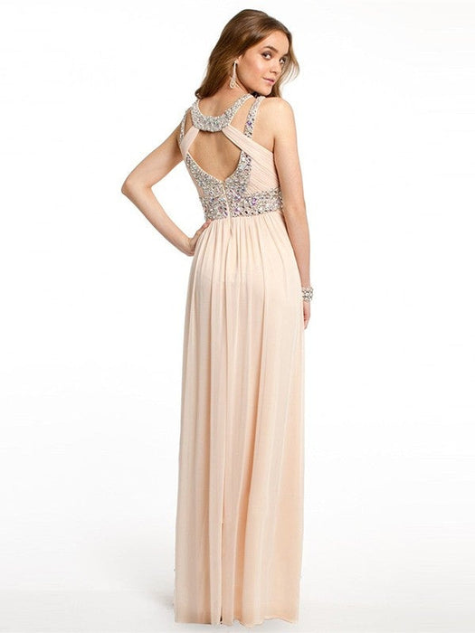 A-Line/Princess Bateau Beading Sleeveless Chiffon Floor-Length Dresses