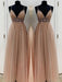 A-Line/Princess Beading Tulle Spaghetti Straps Sleeveless Floor-Length Dresses