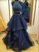 A-Line/Princess Sleeveless Halter Tulle Beading Floor-Length Two Piece Dresses