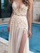 A-Line/Princess Sleeveless V-Neck Chiffon Applique Floor-Length Dresses