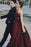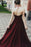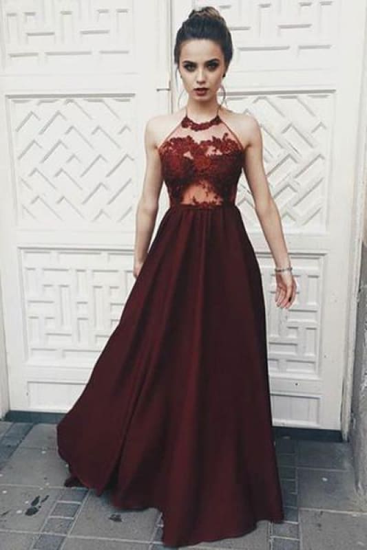 A-line Sexy Halter Sleeveless Dark Red Illusion Bodice Long Prom Dress with Lace