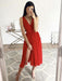 A Line V Neck Red Chiffon Tea Length Prom with Slit, Red Formal Graduation Homecoming