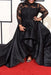 Black Sleeves Satin Plus Size Dress with Lace Long Prom Gown