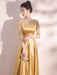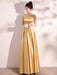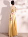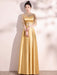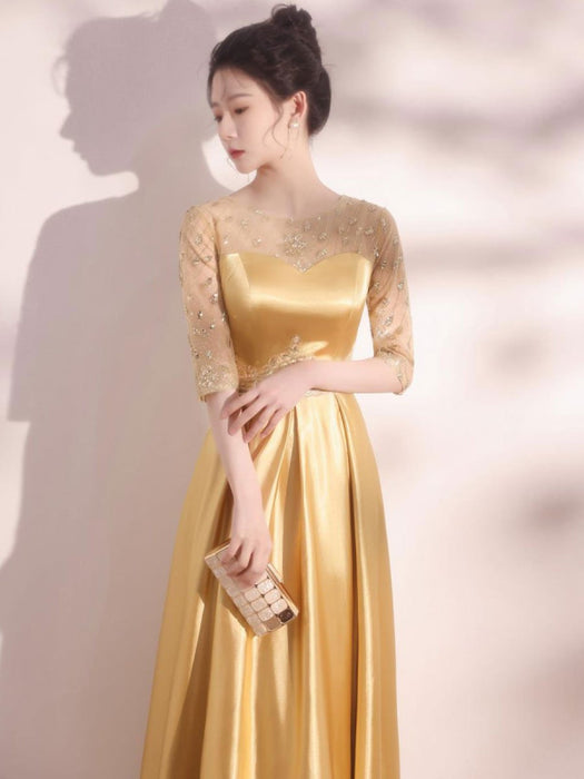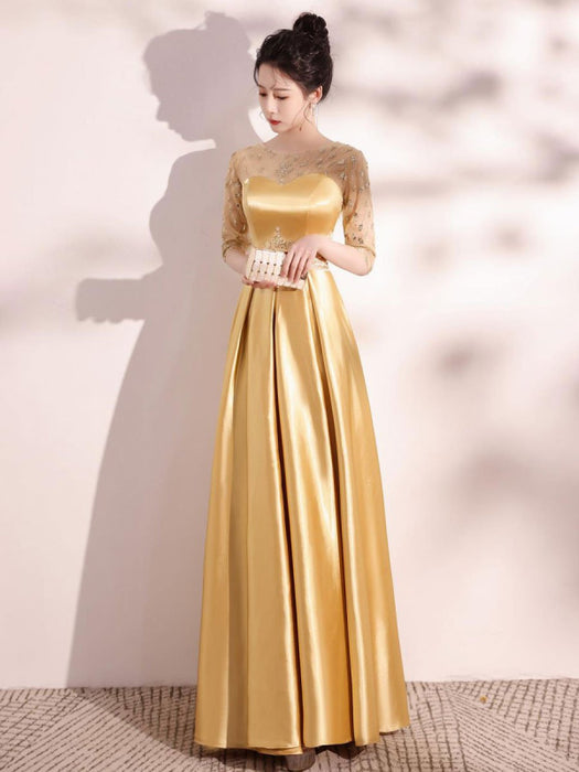 Blond Evening Dress A-Line Jewel Neck Half Sleeves Lace-Up Sequined Floor-Length Social Pageant Dresses