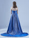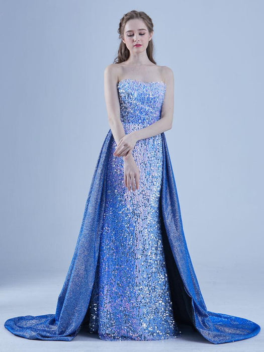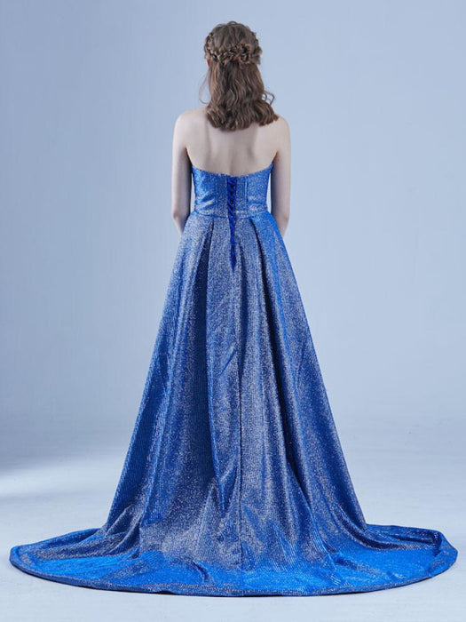 Blue Evening Dress A-Line Strapless Sweep Lace-Up Sequined Social Long Party Dresses