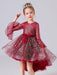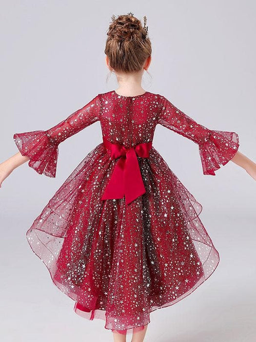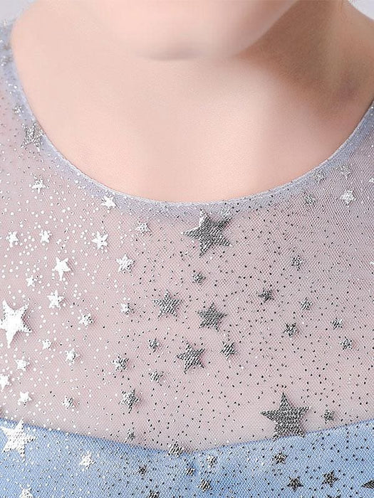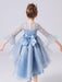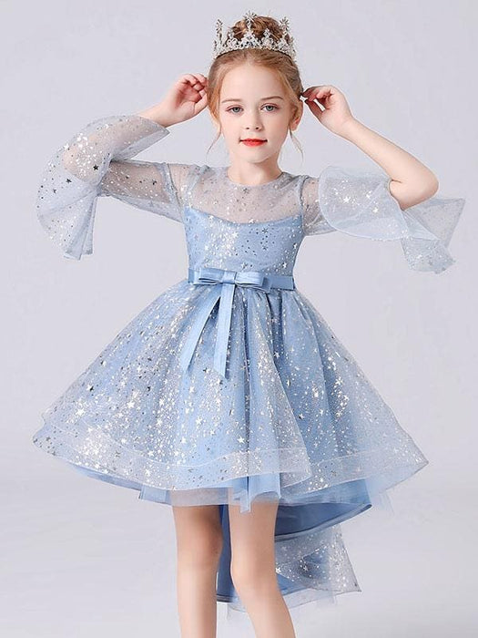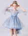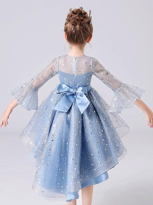 Blue Hi-Lo Flower Girl Dresses Jewel Neck 3/4 Puffy Sleevess Formal Kids Pageant Dresses