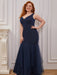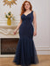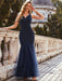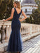 Blue Prom Dress Mermaid V-Neck Polyester Sleeveless Backless Maxi Party Dresses Evening Dress