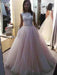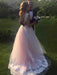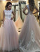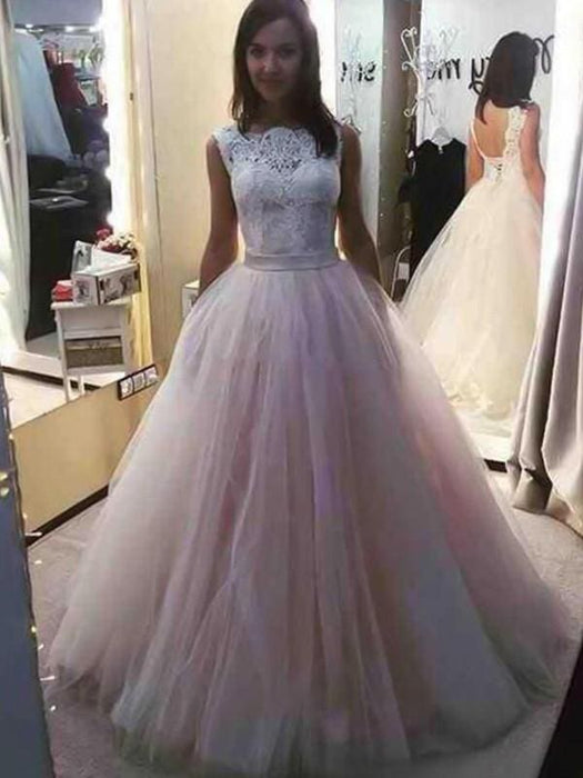 Bridelily A-Line Bateau Sleeveless Sweep/Brush Train Lace Tulle Dresses