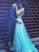 Bridelily A-Line Halter Sleeveless Sweep/Brush Train Lace Tulle Two Piece Dresses