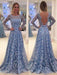 Long Sleeves Lace A-line Floor-Length Bateau With Ruffles Dresses