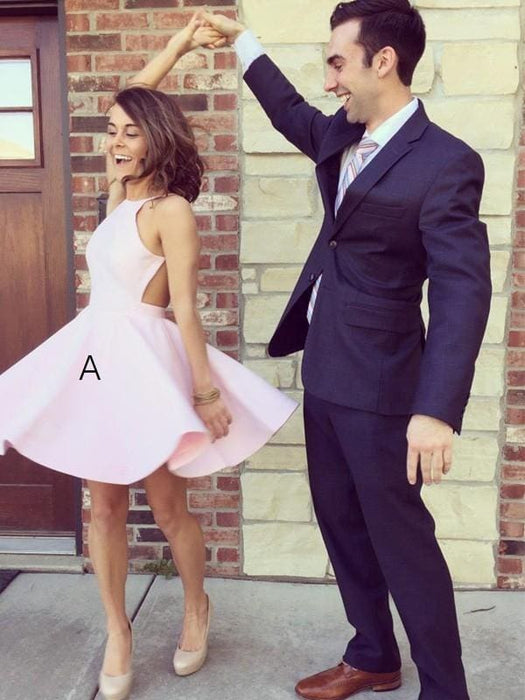 Satin Halter Sleeveless A-line Short/Mini Ruffles Prom Dresses