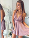 A-Line Satin V-neck Sleeveless Mini Hmecoming Dresses With Sash