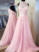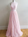 Sleeveless Halter Tulle A-line With Lace Sweep/Brush Train Dresses