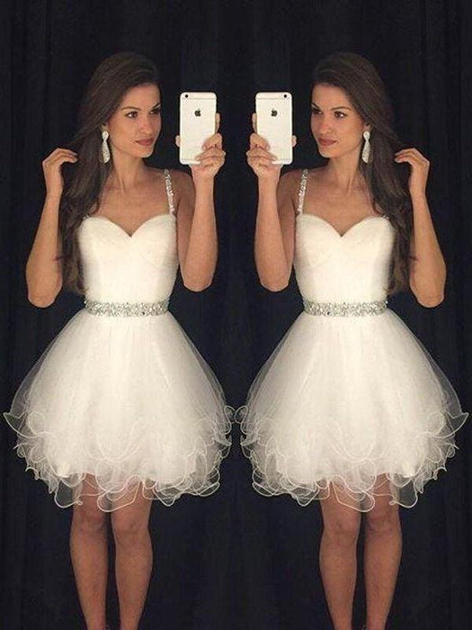 Bridelily A-Line Tulle Sweetheart Sleeveless Short/Mini With Beading Prom Dresses