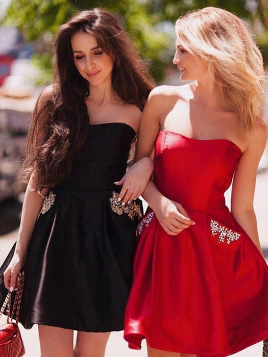 Bridelily A-Line With Ruched Strapless Satin Sleeveless Short/Mini dresses