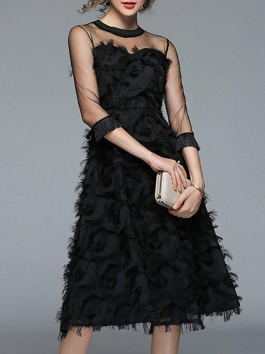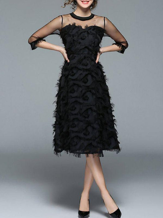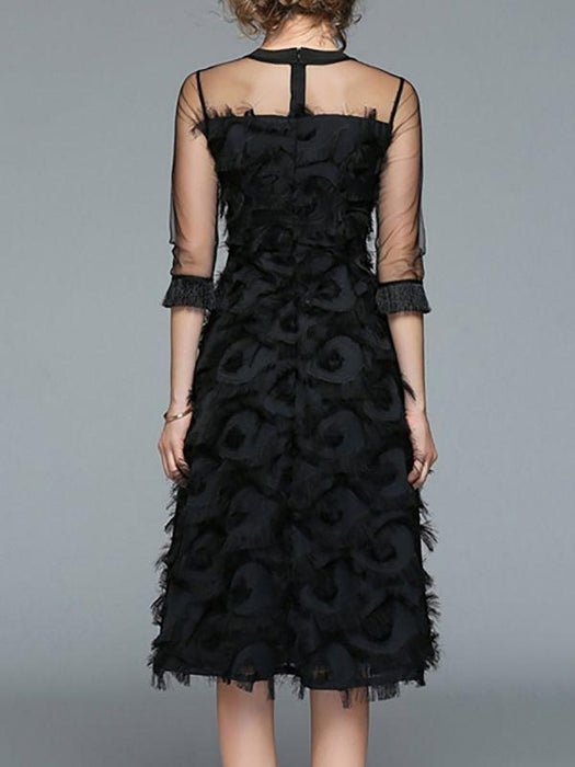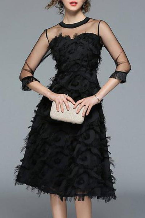 Bridelily Black Midi Dress Party Dress 3/4 Sleeve Vintage Midi Dresses
