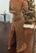 Sexy Gold Dequined Spaghetti Strap Evening Dress Split Long Formal Occasion Dresses JT121