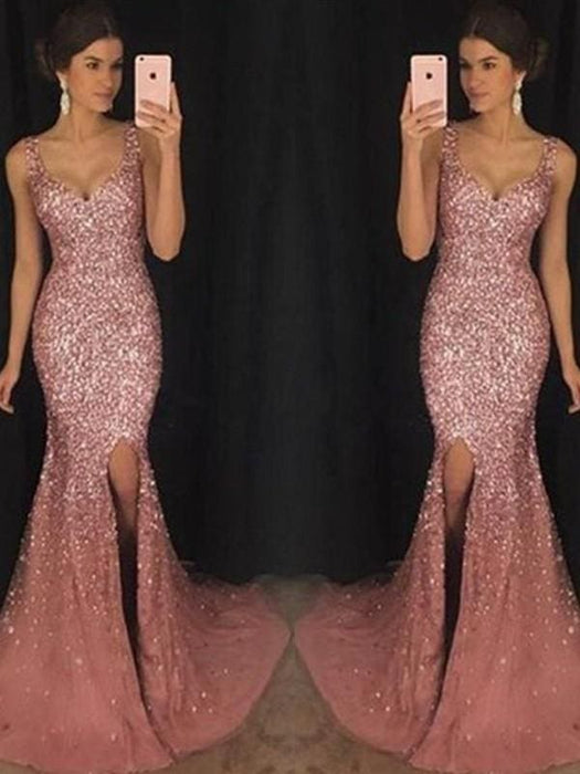 Bridelily Sheath Sweetheart Sleeveless Sweep/Brush Train Sequin Tulle Dresses