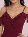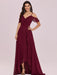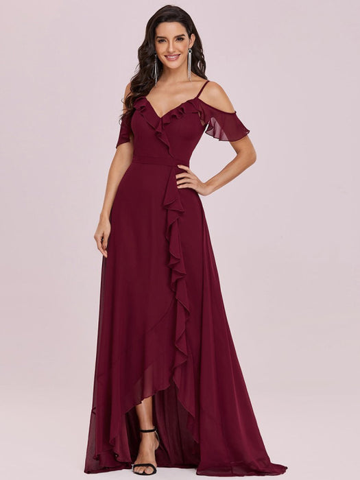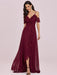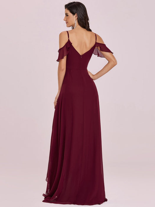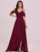 Burgundy Prom Dress V-Neck A-Line Sleeveless Backless Ruffles Split Front Chiffon Maxi Party Dresses