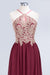 Chic Halter Burgundy Backless Bridesmaid Dress with Appliques