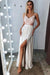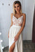 Classic A Line Spaghetti Straps Split Prom Dresses Long with Lace Appliques