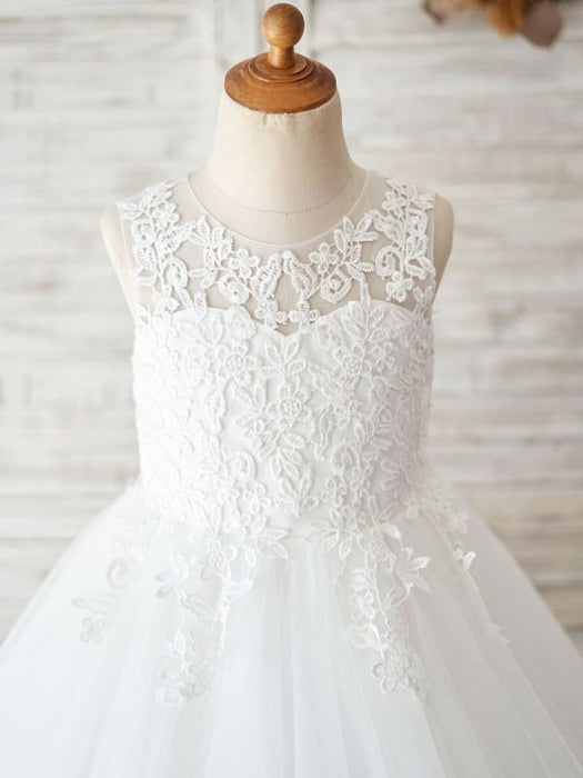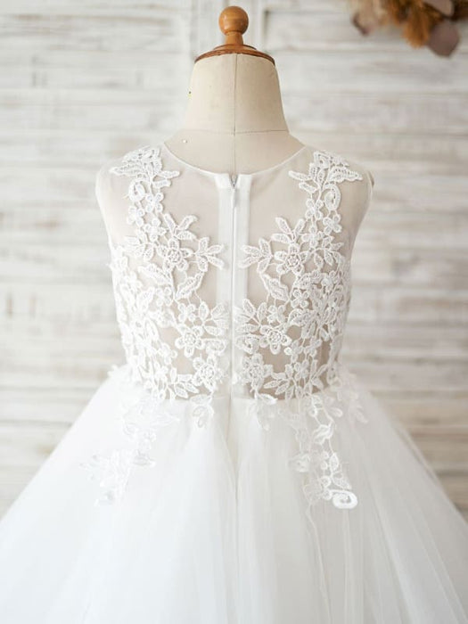 Cute little Girl Dress Sleeveless Lace Bodice Kids Party Dresses