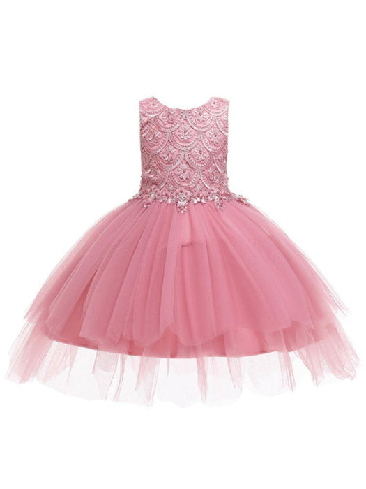 Cute Pink Floral Flower Girl Dresses embroidery Jewel Neck Little Girl Formal Dress