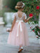 Cute Short Sleeves Little Girl Dresses Jewel Neck Kids Party Dresses