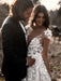 Deep V Neck Short Sleeve Backless A Line Wedding Dresses