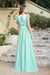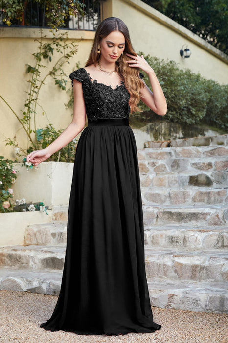 Elegant Cap Sleeves Lace Beadings Evening Dress Ruched Chiffon A-line Formal Dress