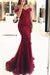 Elegant Burgundy Mermaid Off the Shoulder Beaded Lace Appliques Evening Dresses