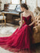 Elegant Burgundy Tulle Long Prom, Unique Burgundy Formal Graduation Evening