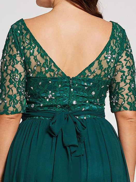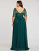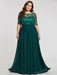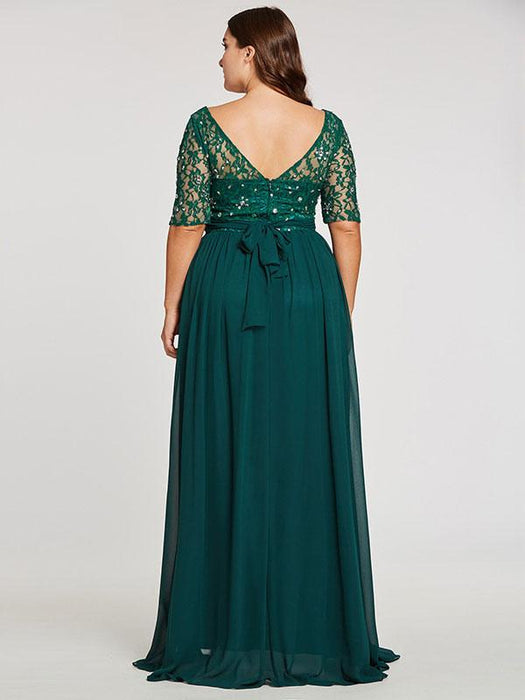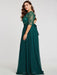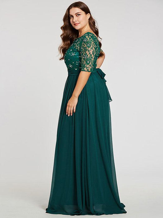 Evening Dress 2021 A Line Jewel Neck Floor Length Half Sleeves Zipper Lace Chiffon Formal Dinner Dresses