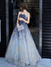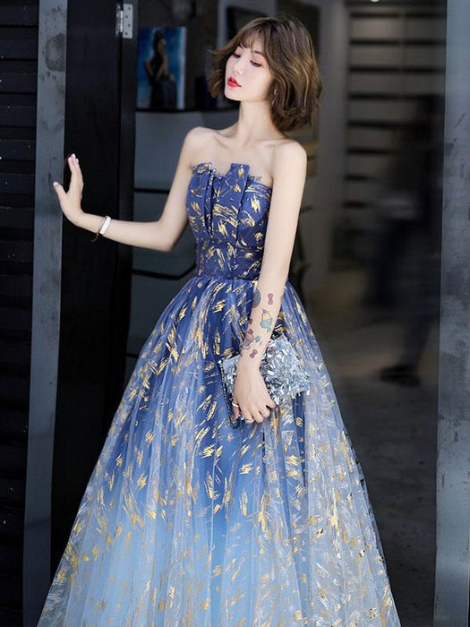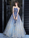 Evening Dress A-Line Strapless Matte Satin Floor-Length Pleated Sequined Prom Dress