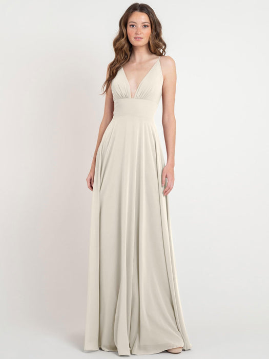 Evening Dress Flesh Color A-Line V-Neck Sleeveless Floor-Length Pleated Chiffon Formal Dinner Dresses