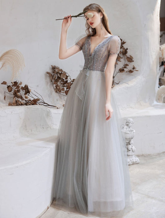 Evening Dress Light Grey A Line Bateau Neck Floor Length Social Party Dresses Pageant Dress