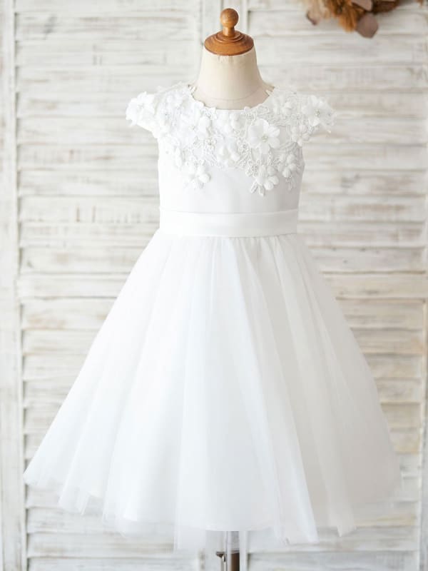 Flower Girl Dresses Jewel Neck Back Bow Beaded Party Dresses for Kids