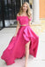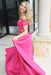 Fuchsia Off Shoulder Prom Dress with Lace Two Piece Long Satin Formal Dresses