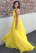 Halter Neck Backless Yellow Long Prom Dresses, Open Back Yellow Formal Dresses, Yellow Evening Dresses