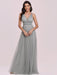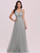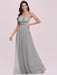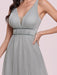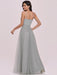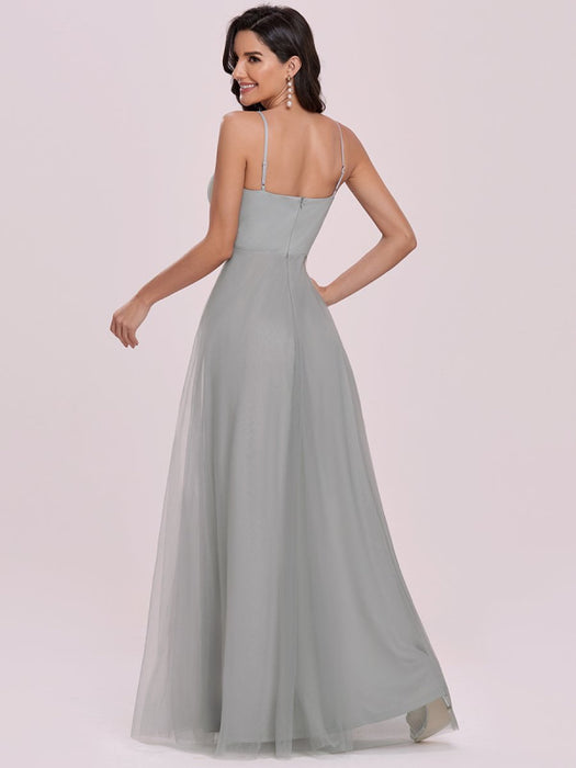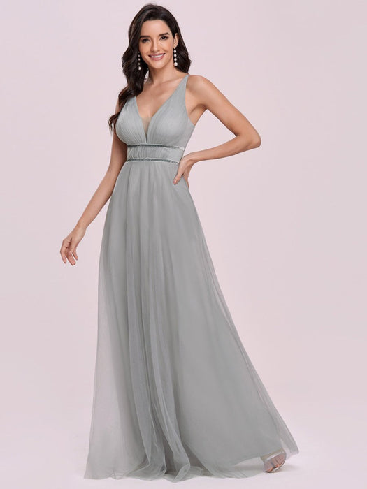 Light Grey Prom Dress A-Line V-Neck Tulle Sleeveless Sash Long Wedding Guest Dresses
