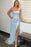 Light Sky Blue Mermaid Strapless Split Prom Dress With Lace Appliques